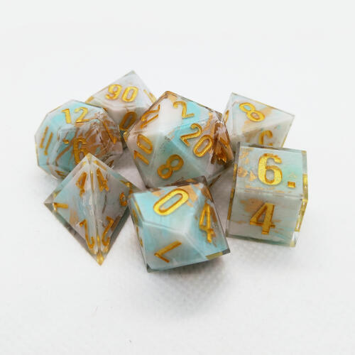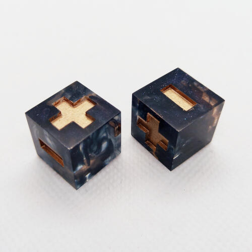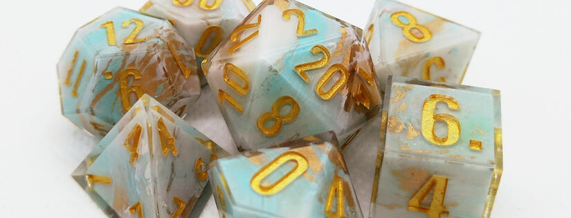 All my dice are cast, sanded, polished, and inked by hand. Each die is unique and might have small imperfections.